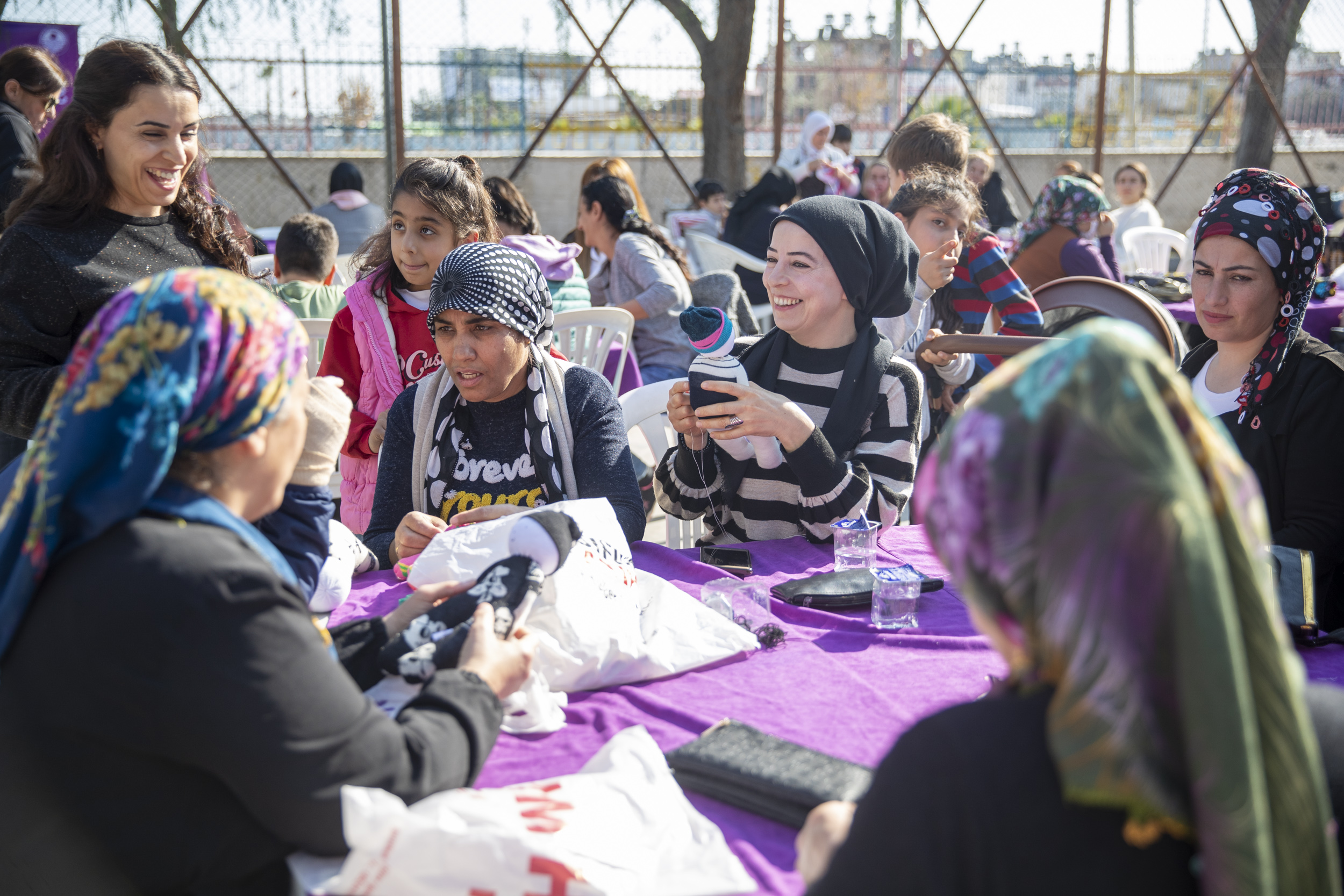 Kadınlar, ‘Elde Var Yetenek, Evde Var Ekmek’ sloganıyla hayata geçirilen ve kadınlara meslek öğretip, kendi evlerinde üretim yapmalarını ve ev ekonomilerine katkı sağlayan projeden duydukları mutluluğu ifade ediyor. ‘Çoraptan Oyuncak’ atölyesine katılan kadınlar, el becerilerini geliştirmenin yanı sıra, sosyalleşme fırsatı da buluyor. Atölye kapsamında anneleri dikiş dikerken, minikler de öğretmenler eşliğinde eğitici oyunlar oynadı.
