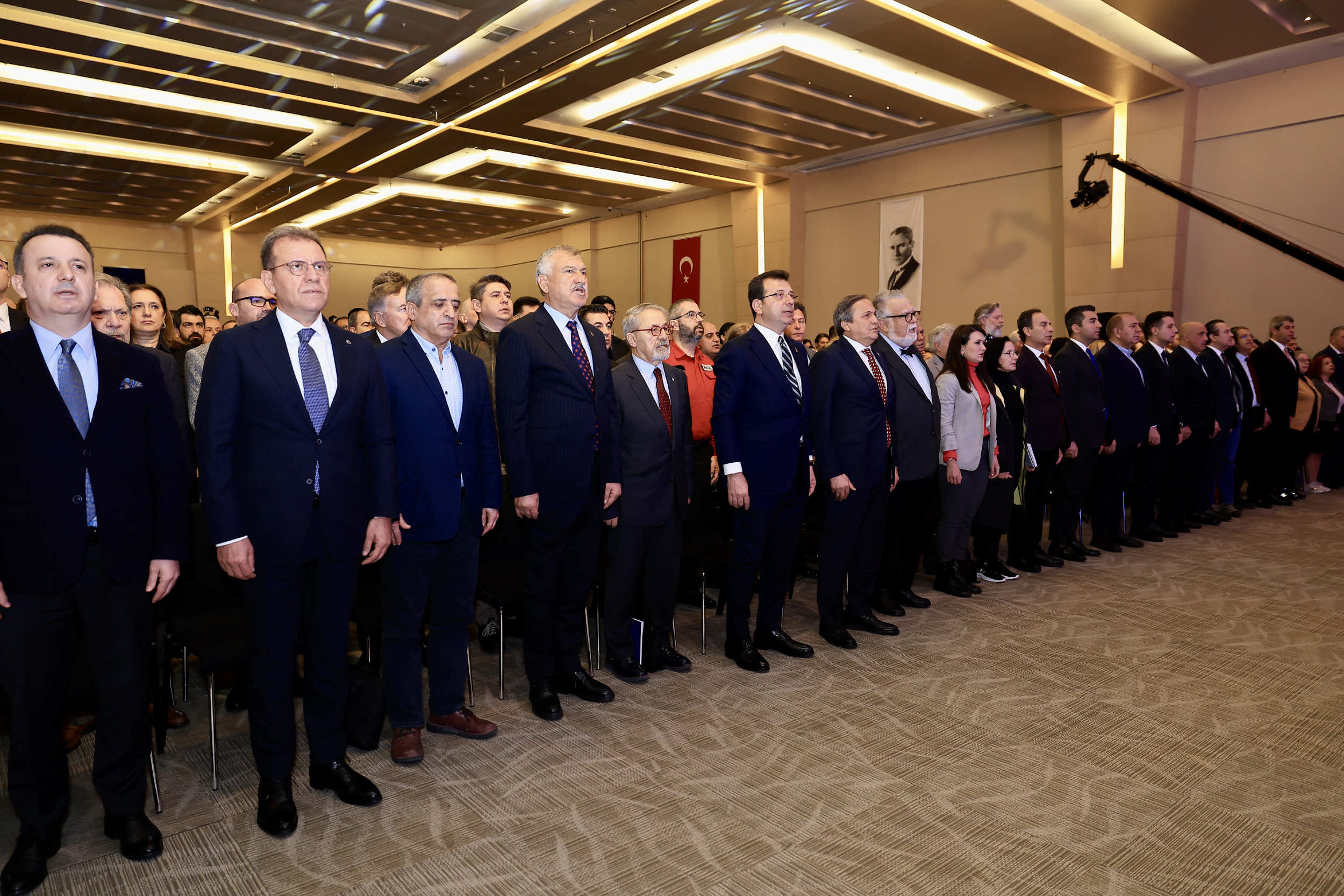 Toplantıda konuşan İmamoğlu, İstanbul için deprem konusunda seferberlik başlattıklarını belirten İstanbul Büyükşehir Belediye Başkanı Ekrem İmamoğlu, “İstanbul Büyükşehir Belediyesi olarak güçlü bir inisiyatif alıyoruz, düzeni değiştiriyoruz. Deprem ve afetlere karşı bu kadim şehri dirençli bir kent haline getirmek için her şeyi tekrardan, sıfırdan başlatıyoruz. Eğer bu topraklarda durmadan depremler oluyor, binalar yıkılıyor, insanlarımız ölüyorsa; iktidarı, muhalefeti, bürokratı ve vatandaşıyla birlikte hepimiz, depremi Türkiye’nin birincil sorunu kabul etmeliyiz” dedi.
