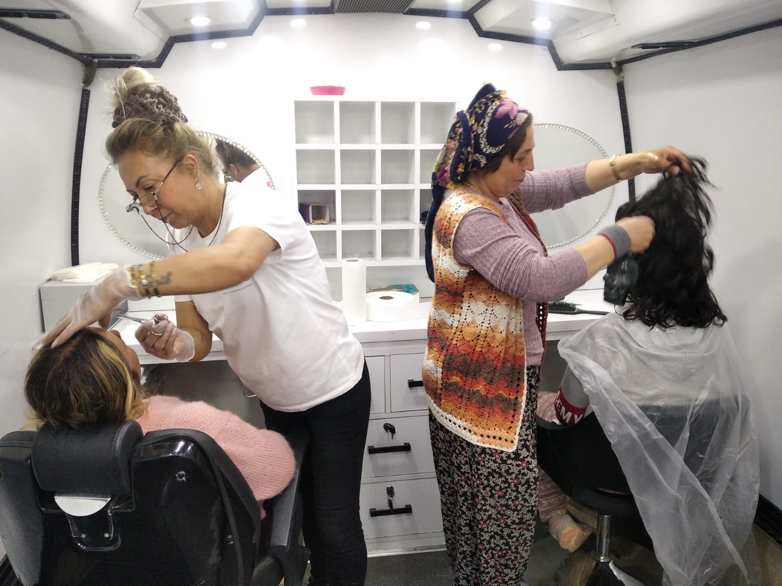 Mobil Kuaför de Adıyaman’da hizmete başladı. Depremin ardından kişisel bakımlarını gerçekleştiremeyen depremzedeler için hizmet veren Mobil Kuaför’de, kadın, erkek ve çocuklar için saç kesimi, saç boyası, tıraş, el ve ayak tırnak bakımı ile cilt bakımı yapılıyor. Adıyaman’daki kadın ve çocuklar için danışmanlık hizmeti verecek olan psikososyal destek ekibi de Pazartesi günü yola çıkacak. Ekip, depremin kadın ve çocuklar üzerinde verdiği etkiyi en aza indirmek adına destek çalışmaları yürütecek.