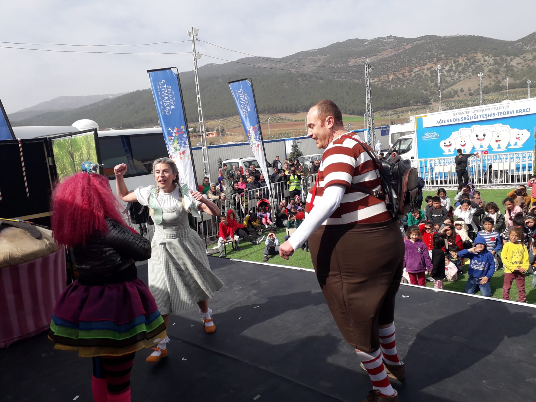 Mersin Devlet Opera ve Balesi, yaşadığımız deprem felaketi sonrasında depremden etkilenen şehirlerimizdeki çocuklarımızın yaralarını sarmak, onlara moral vermek ve bir nebze olsun yüzlerini güldürebilmek amacıyla gezici kamyon sahnesinde ve kapalı alanlarda çocuklarla buluşmaya devam ediyor. Geçtiğimiz hafta Gaziantep, Osmaniye ve Nurdağı’nda moral ve motivasyon amaçlı gerçekleşen ve 1350 çocuğa ulaşan etkinlikler sonrasında ise bu hafta;