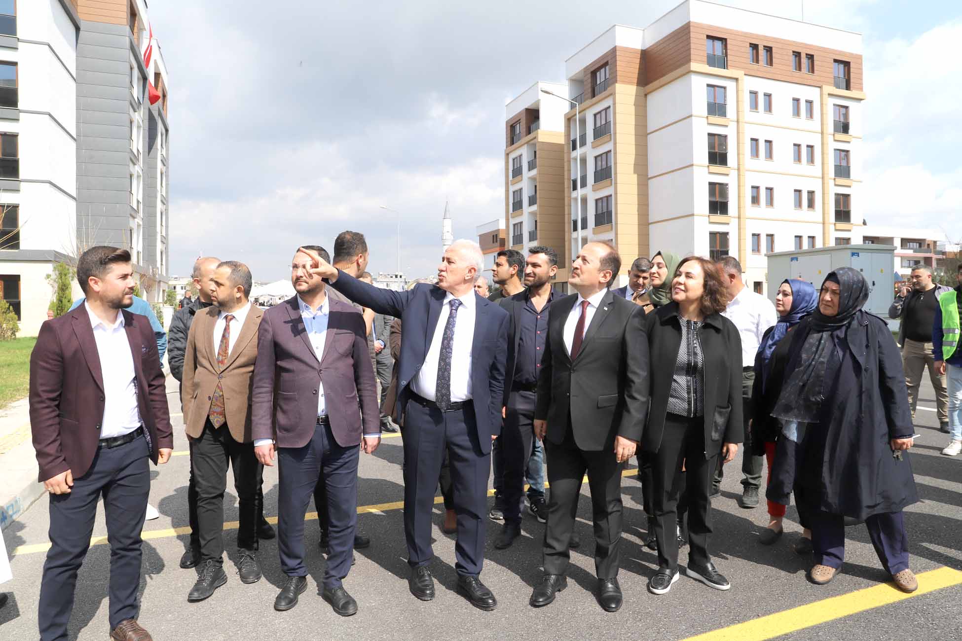 Konuşmalardan sonra Başkan Gültak, protokol üyeleri ile birlikte yapımı biten ve hak sahiplerine anahtar teslimi yapılan örnek daireleri ve yerinde kentsel dönüşüm proje alanındaki donatıları gezdi.