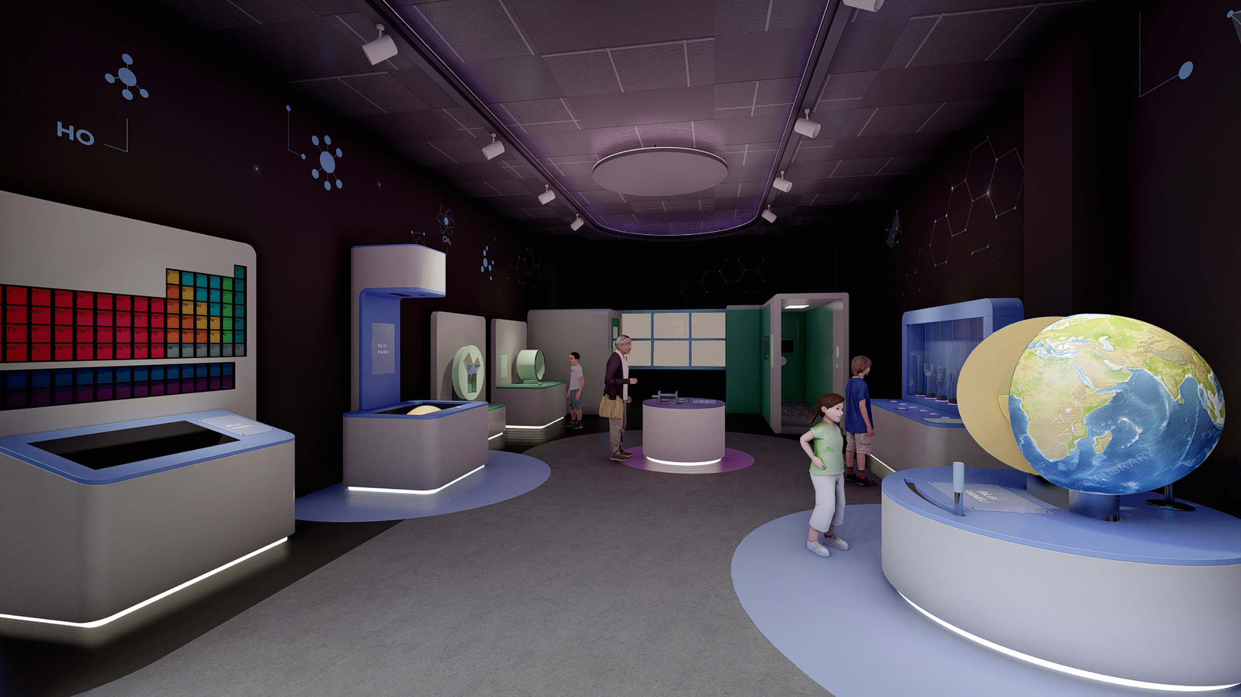 Birinci katta yer alacak olan planetaryumda, bilgisayarla yönlendirilen çoklu projeksiyon cihazı ve balık gözü lensi ile kubbe şeklinde hazırlanan bir yapının içinde güneşin, yıldızların, gezegenlerin ve diğer gök cisimlerinin 360 derecede 3 boyutlu görüntüleri yansıtılacak. Bu alanda, uzay boşluğundaki hareketlerin gerçekçi bir şekilde simüle edilebilmesi sağlanacak. Çelik konstrüksüyonların büyük bir çoğunluğunun yerleştirildiği planetaryumun yüzde 80’i tamamlandı.