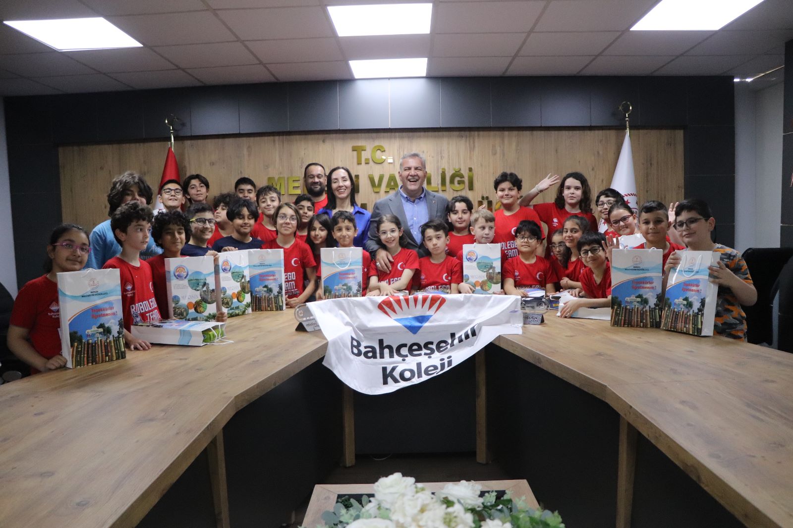 Mezitli Bahçeşehir Koleji “Satranç Bölge Şampiyonları” ve “Robotex Turkey” de Türkiye Şampiyonu olan 32 öğrenci; Kurum Müdürü Sayın Nilgün GÜVEN eşliğinde İl Milli Eğitim Müdürümüz Sayın Adem KOCA’yı makamında ziyaret ettiler.