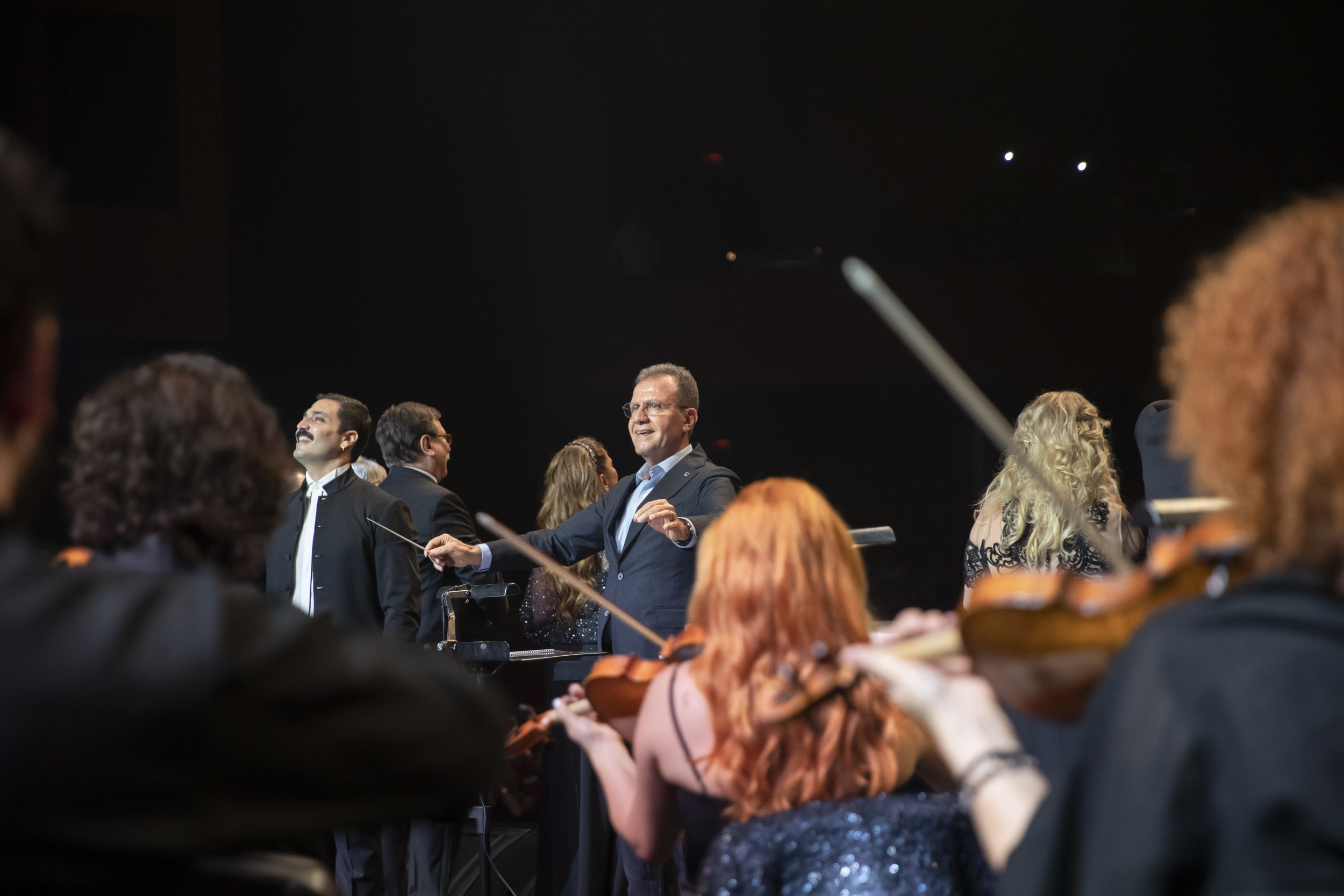 Konserin son parçası olan ‘Memleketim’ şarkısında orkestrayı yöneten Mersin Büyükşehir Belediye Başkanı Vahap Seçer katılımcılar tarafından ayakta alkışlandı.