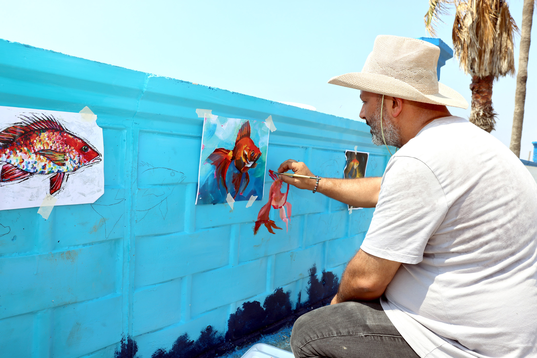 Akdeniz Belediyesi’nin, Karaduvar Mahallesi sahiline kazandırdığı, yüzlerce vatandaşın dinlenmek, spor yapmak veya çocuklarıyla eğlenip piknik yapmak amacıyla uğradığı Sardalya Park’ın duvarları; türlü balıklar, deniz canlıları, yosun ve mercanlar çizilerek parkın adına yakışır hale geldi. Akdeniz Belediyesi’nin düzenlediği Geleneksel Balık Festivali ile adını tüm Türkiye’nin tanıdığı Karaduvar Mahallesi sahilinde, birkaç ay önce yaklaşık 18 bin metrekarelik alan üzerine kazandırdığı Sardalya Park’a her yaştan vatandaş yoğun ilgi gösteriyor. Sıcaklardan kaçarak deniz havası almak, aileleriyle eğlenip piknik veya spor yapmak isteyen vatandaşlar Sardalya Park’a akın ediyor. Parkın çevre koruma duvarı tabloya döndü Denize sıfır konumdaki 18 dönüm büyüklüğe sahip Sardalya Park ve etrafındaki yeşil alanda hummalı bir çalışma gerçekleşiyor. Kültür ve Sanat Müdürlüğü personeli Ressam ve Heykeltıraş Haydar Turan tarafından parkı çevreleyen koruma duvarı adeta bir sanat eserine dönüşüyor. Ressam Turan, parkı çevreleyen koruma duvarının üzerine başta Sardalya olmak üzere çeşitli balıklar, türlü deniz canlıları, mercanlar ve yosunlar çizerek, Sardalya Parkı’nı adına yakışır bir görünüme kavuşturdu. Mahalle sakinlerinden teşekkür… Sardalya Parkı’nın etrafını saran metrelerce uzunluktaki koruma duvarını süsleyip müthiş bir güzellik katan Ressam Haydar Turan, sahile sıfır konumdaki parkın görselliği ve mimarisine de ayrı bir renk kattı. Sardalya Parkı’nın çehresini tamamen değiştirip güzelleştiren duvar resimlerini gören Karaduvar Mahallesi sakinleri de beğenilerini dile getirip emeği geçenlere teşekkür etti.
