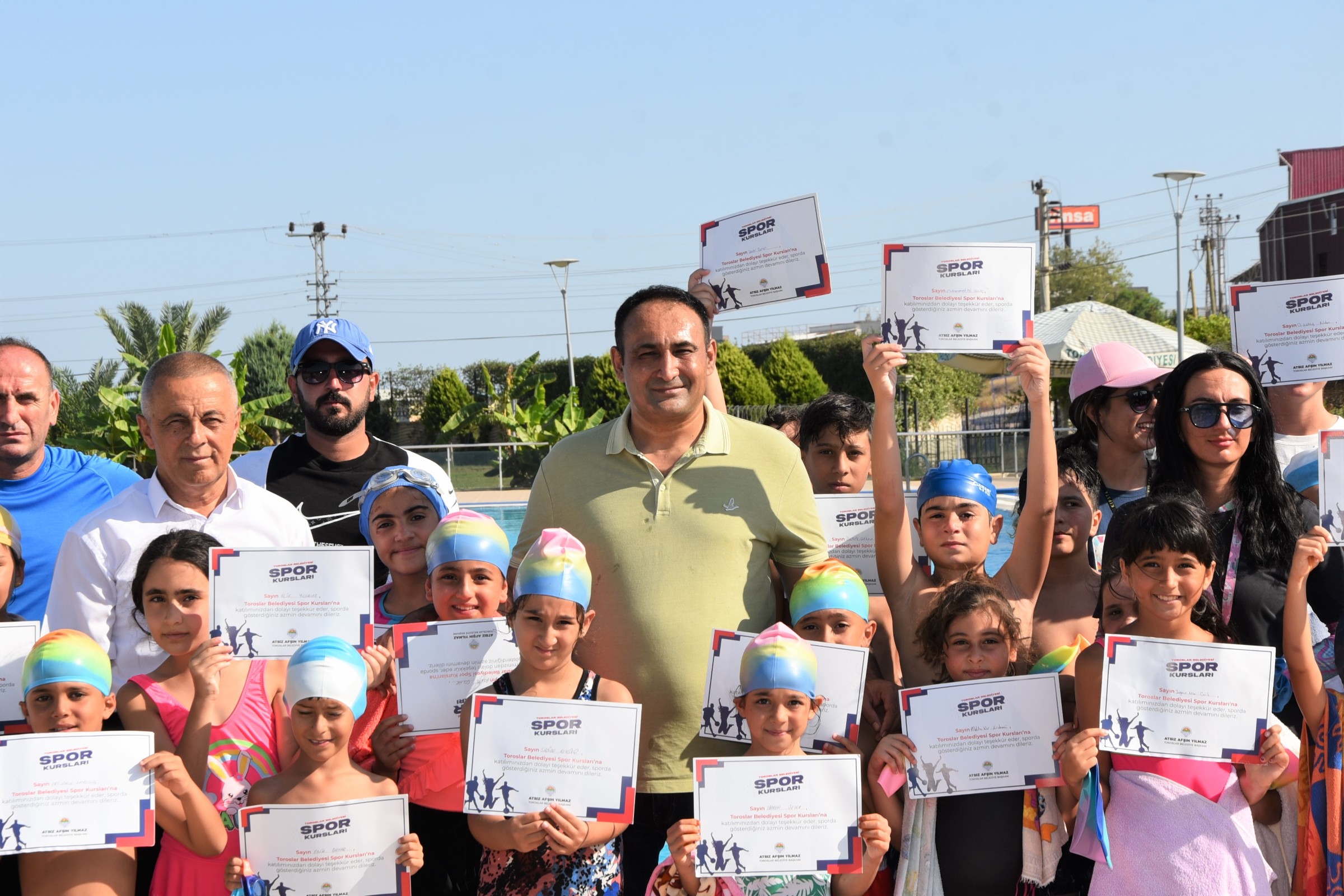 Toroslar Belediyesi tarafından Yaz Spor Okulları bünyesinde 7-18 yaş grubuna yönelik düzenlenen Yüzme Kurslarının ilk dönemi sona erdi. Yüzme öğrenen 850 kursiyer, sertifikalarını Toroslar Belediye Başkanı Atsız Afşın Yılmaz’dan aldı.