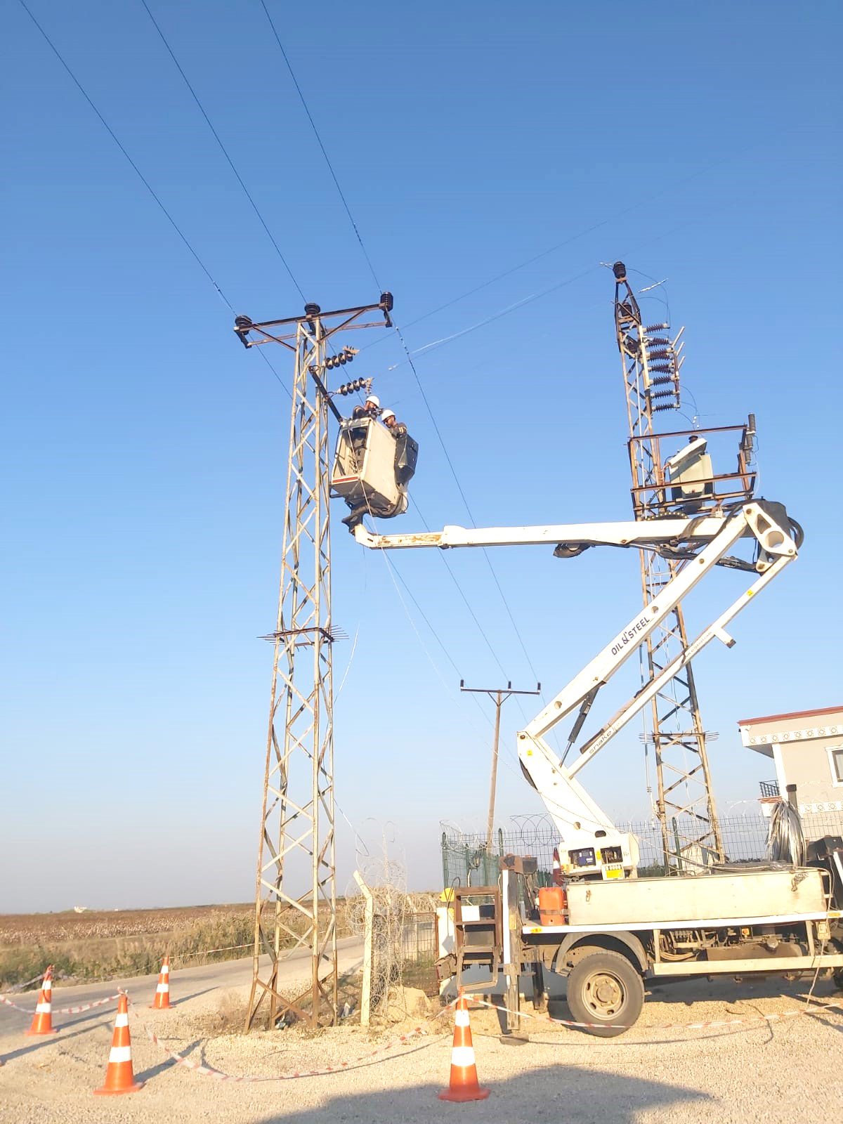 İş Sağlığı ve Güvenliği tedbirlerinden ödün vermeden çalışmalarını sürdüren ekipler, açık hava ve güneşin etkisiyle çok yüksek sıcaklıklara çıkan demir direklere tırmanarak zarar gören iletkenleri yeniledi, panoları değiştirdi, zarar gören trafo merkezlerini onardı.