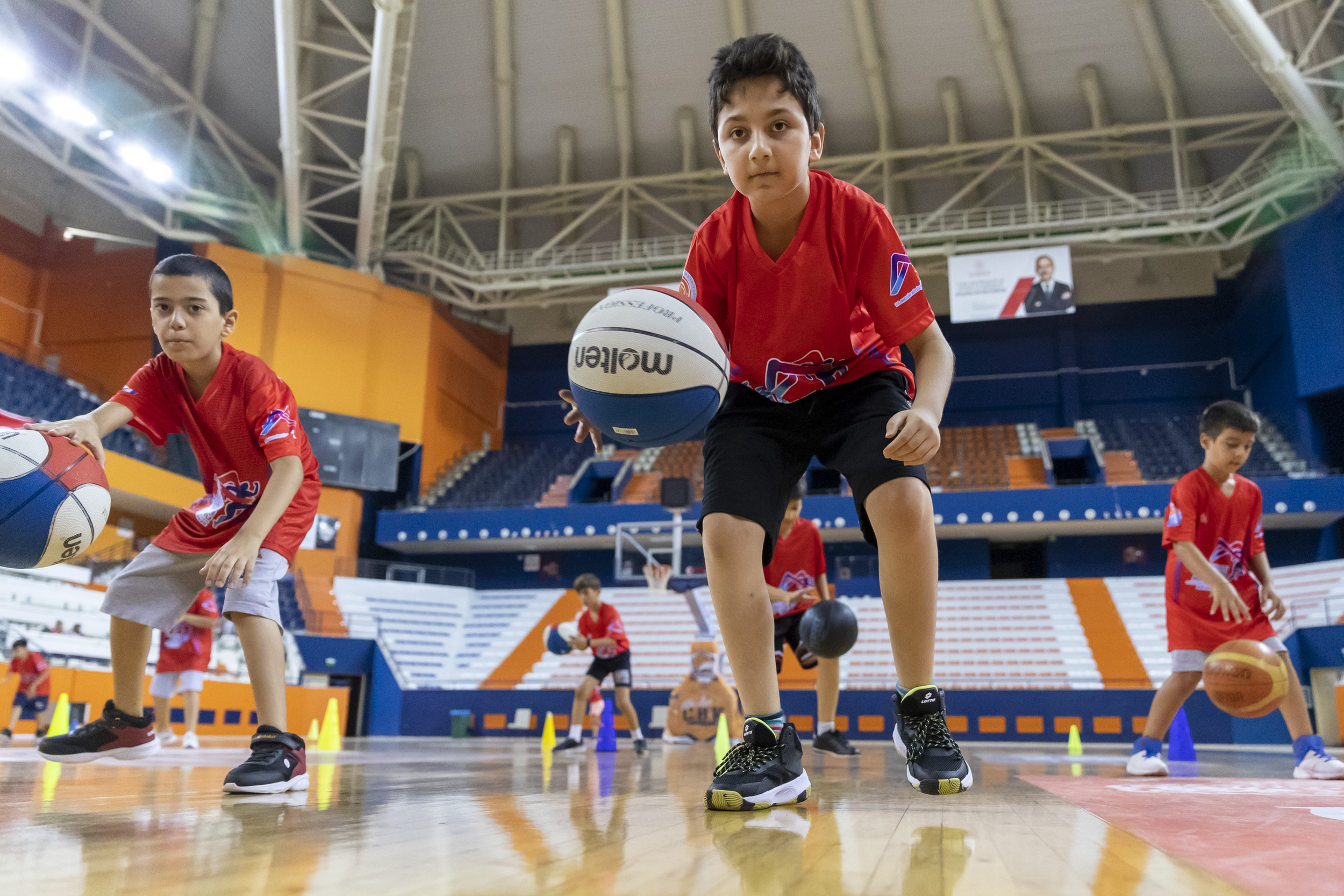 Büyükşehir Belediyesi’nin yılın 12 ayı devam eden ücretsiz basketbol kursları, özellikle yaz döneminde gençlerin yoğun ilgisiyle karşılaşıyor. Büyükşehir’in antrenörleri ile Servet Tazegül Spor Salonu’nda verilen kurs sayesinde yeni yetenekler keşfedilirken, gençler hem spor alışkanlığı kazanıyor hem de sosyalleşiyor. 2007 ve 2015 doğumluların kayıt yaptırabildiği ve şu anda 120 öğrencinin devam ettiği kurs Pazartesi, Salı ve Perşembe günleri veriliyor. Büyükşehir’in basketbol ve diğer branşlardaki ücretsiz kurslarına kayıt, Macit Özcan Spor Tesisleri’nde yapılıyor.