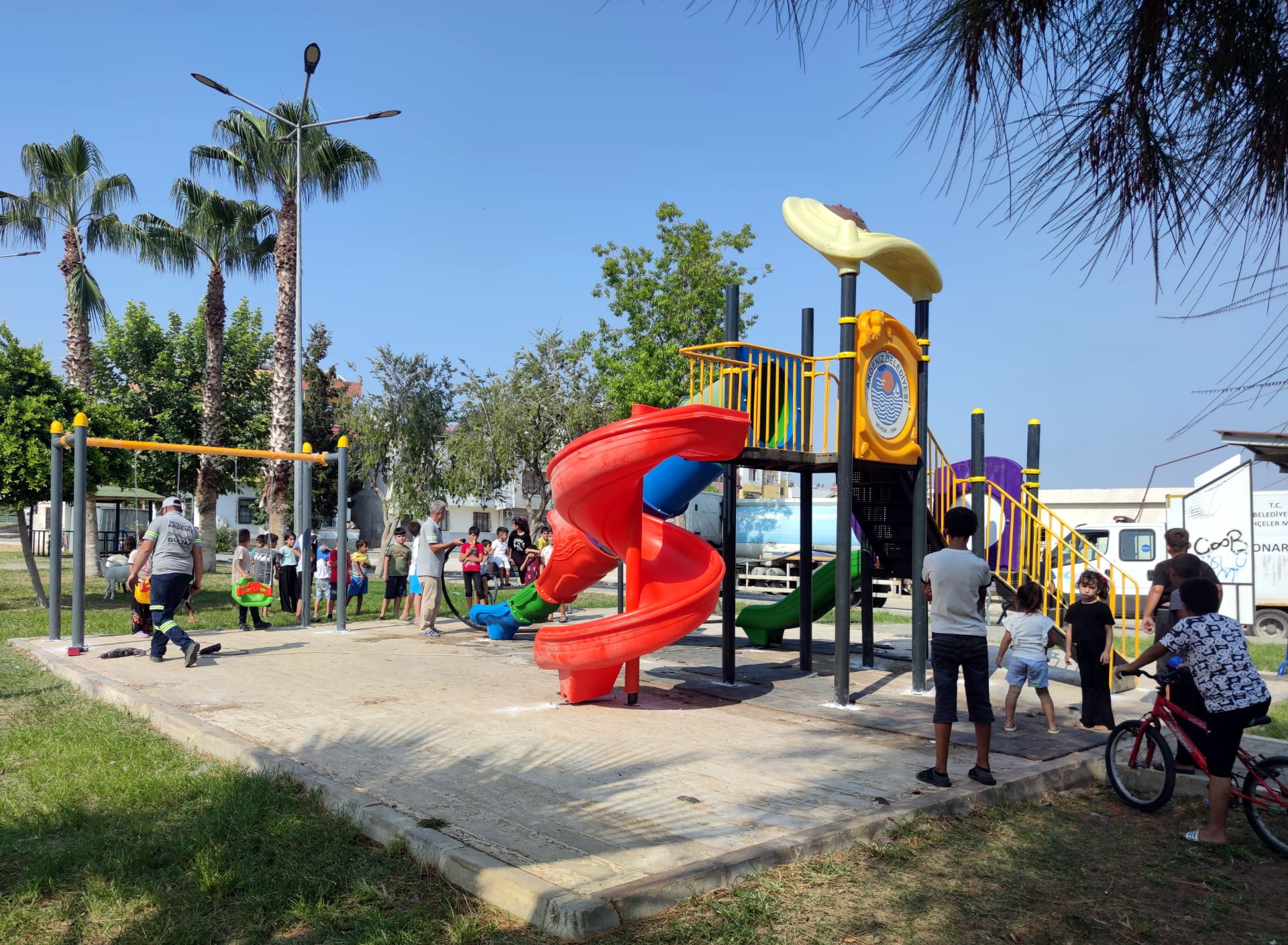Akdeniz Belediyesi; ilçeye bağlı Güneş Mahallesi’nde bulunan çocuk parkının çeşitli oyun gruplarını yeniledi, yeni oyun gruplarını gören mahalleli çocuklar parka akın etti, saatlerce oynayıp gönüllerince eğlendi. Akdeniz Belediyesi, ilçe genelindeki park, bahçe ve yeşil alanlara yönelik yenileme ve bakım çalışmalarını sürdürüyor. Akdeniz’e onlarca park kazandıran, miadını dolduran parkları da yenileyen Park ve Bahçeler Müdürlüğü, son olarak Güneş Mahallesi’nde bulunan çocuk parkının kaydırak, salıncak ve diğer oyun gruplarını yeniledi. Yeni oyun gruplarının kurulduğunu gören mahalleli çocuklar parka adeta akın edip saatlerce eğlendi. İlçenin dört bir yanındaki park ve yeşil alanlar bakıma alındı Diğer yandan, Kazanlı Mahallesi Caretta Caretta Parkı, Karaduvar Cumhuriyet ve Sardalya Parkı, Adanalıoğlu Limonlu Mahallesi Eylül Parkı, Karacailyas ve Kazanlı mahalleleri futbol sahalarında çim biçme ve temizlik çalışması yapan Park ve Bahçeler Müdürlüğü ekipleri, Huzurkent Gazi Mahallesi’nde okul içinde ağaç budama çalışması yaptı. Ekipler; Adanalıoğlu Fıratlar mevkiinde, yola uzandığı için özellikle sürücülerin görüşünü engelleyen ağaç dallarını ve Köselerli Mahallesi Şen Sokak Parkı’nda tehlike arz eden okaliptüs ağacını da budadı. Karacailyas Polis Merkezi Amirliği ile Emek Mahallesi Muhtarlığı bahçesi ve Huzurkent Bahşiş Mahallesi Şehit Jandarma Uzman Çavuş Ramazan Bahşiş Parkı’nda budama, çim biçme ve temizlik yapan ekipler; Huzurkent Bahşiş Mahallesi Güreş Salonu önündeki yeşil alanda uzayan çimleri biçip temizledi.