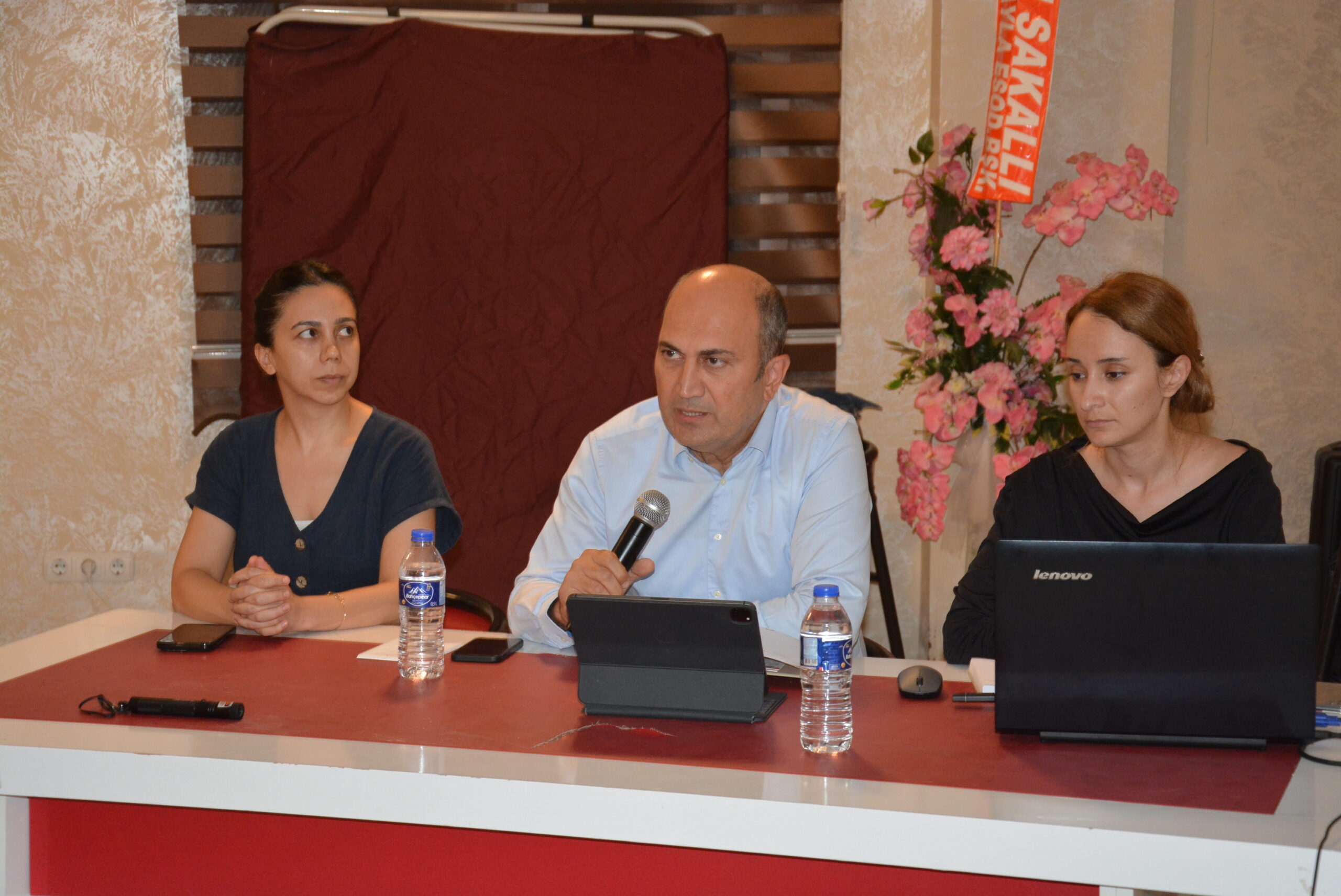 Mersin Büyükşehir Belediyesi Genel Sekreter Yardımcısı Tarık İrde ile Etüt ve Projeler Dairesi Başkanı Nur Banu Çelik, projenin tanıtımı ve istişaresi için Çamlıyayla Esnaf Odaları Birliği salonunda düzenlenen toplantıda, katılımcılara bilgi verdiler.