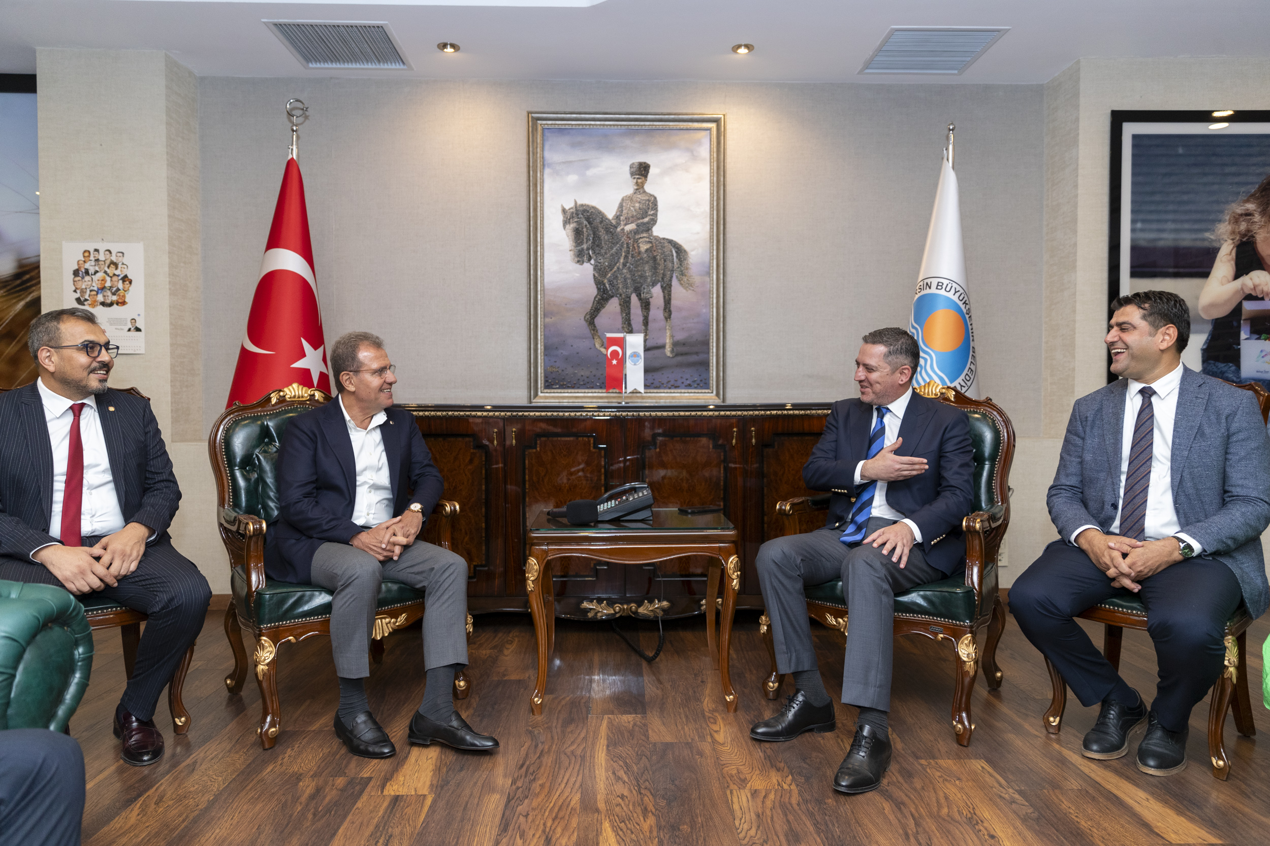 Mersin Büyükşehir Belediye Başkanı Vahap Seçer, Türkiye Barolar Birliği (TBB) Başkanı Erinç Sağkan, TBB Genel Sekreteri Veli Küçük, Mersin Barosu Başkanı Gazi Özdemir, Adana Barosu Başkanı Semih Gökayaz ve baroların yönetim kurulu üyelerini makamında ağırladı.