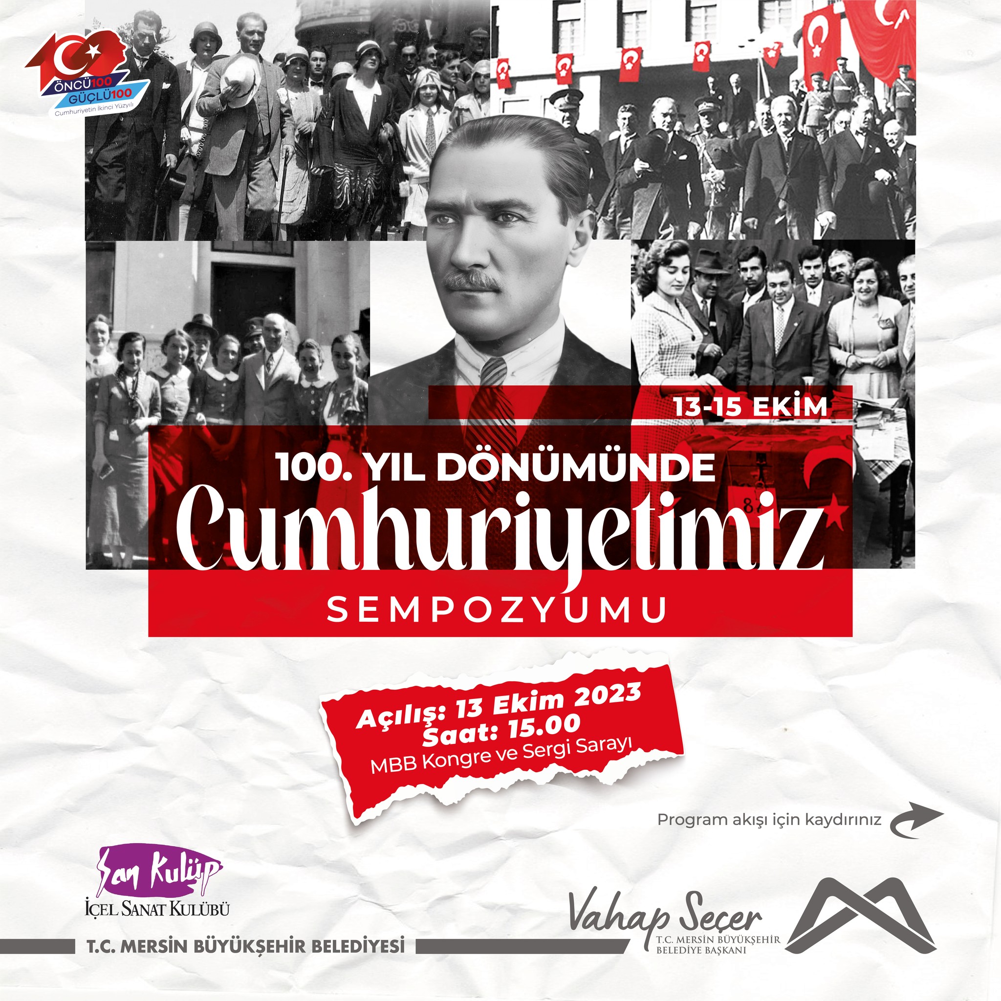 Kültür ve Sosyal İşler Dairesi Başkanlığı olarak bu yıl Cumhuriyet’in 100. yılı kapsamında bir dizi etkinlik gerçekleştirdiklerini ve bunlardan birisinin de ‘100. Yıl Dönümünde Cumhuriyetimiz Sempozyumu’ olduğunu ifade eden Kültür ve Sosyal İşler Dairesi Başkanlığı’na bağlı Kent Katılımı ve Sivil Toplum İle İlişkiler Şube Müdürü Çağan Coşkuner, “Mersin’e Değer Katanlar Kent Tarihi Kurulu ve İçel Sanat Kulübü Tarih Kurulu’nun da katkılarıyla, 13-14 Ekim’de söz konusu sempozyumumuzu gerçekleştireceğiz. Sempozyum çerçevesinde; Türkiye Cumhuriyeti’nin kuruluş ve gelişme sürecinin tarihi, siyasi, sosyal, kültürel, ekonomik boyutları, akademik bir anlayışla ortaya konulacak” dedi.