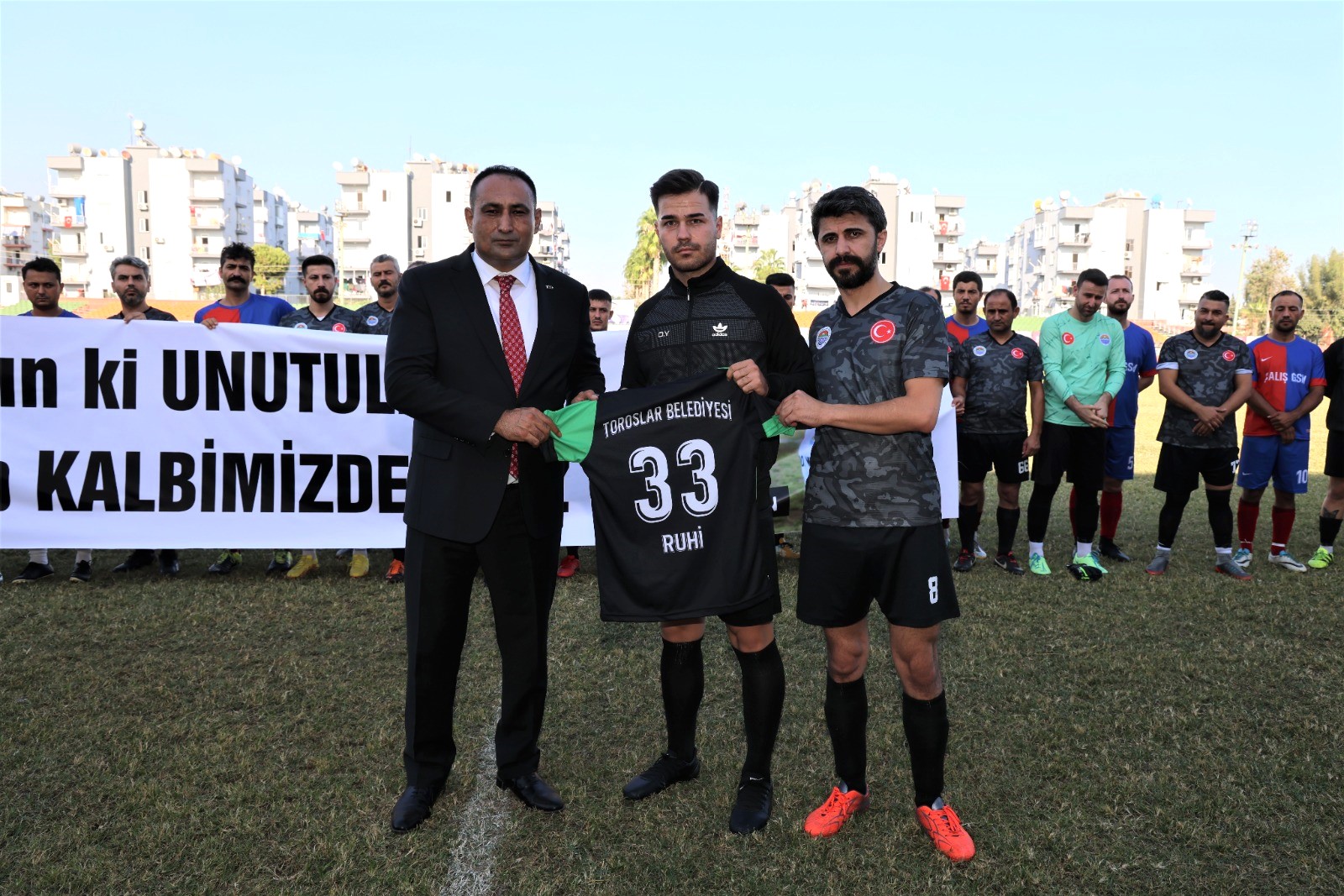 Toroslar Belediyesi Takımı ise maç öncesi, hayatını kaybeden mesai arkadaşları Ruhi Yılmaz ile Ahmet Dağdalen’i unutmadıklarını bir pankart açarak ifade etti.