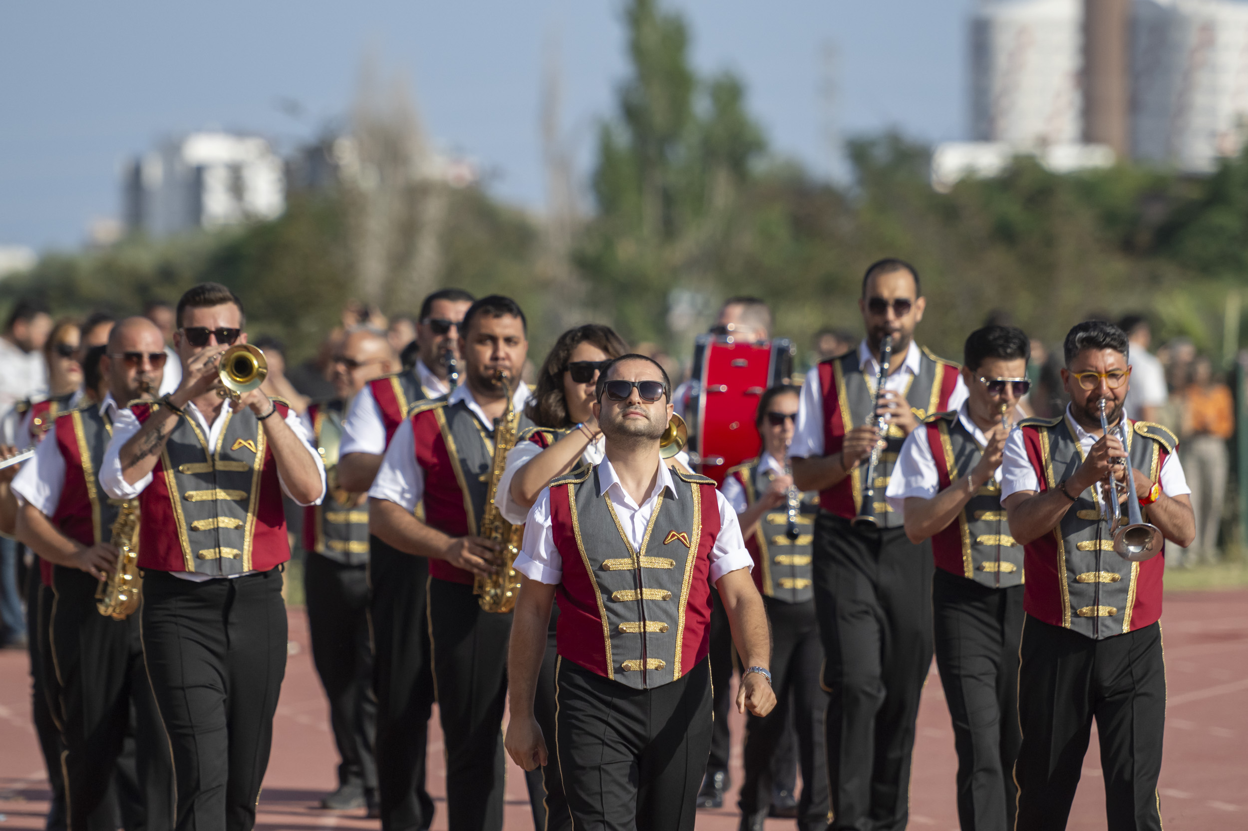 Mersin Üniversitesi Stadyumu’nda gerçekleşen tören, mezun olan öğrencilerin kortej yürüyüşüyle başladı. Mersin Büyükşehir Belediyesi Bandosu’nun mini konserinin ardından konuşmalara geçildi.