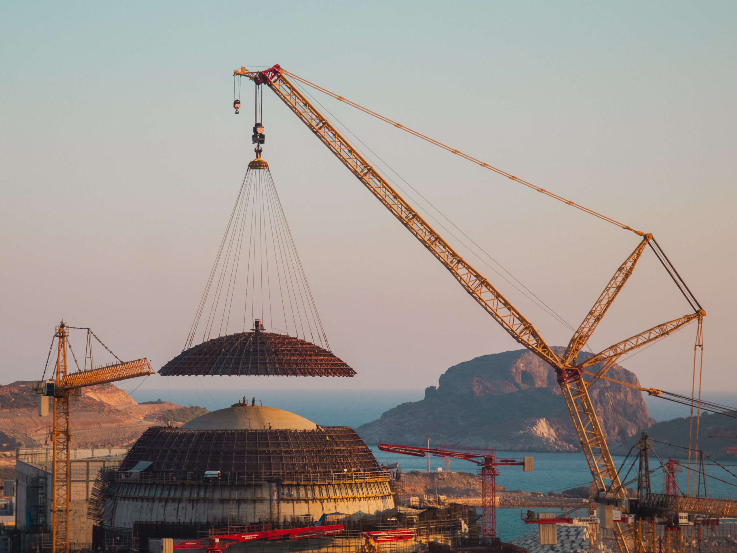 AKKUYU NÜKLEER GÜÇ SANTRALİ’NİN 1’İNCİ ÜNİTESİNDE DIŞ KORUMA KABUĞUNUN KUBBESİ TASARIM KONUMUNA YERLEŞTİRİLDİ