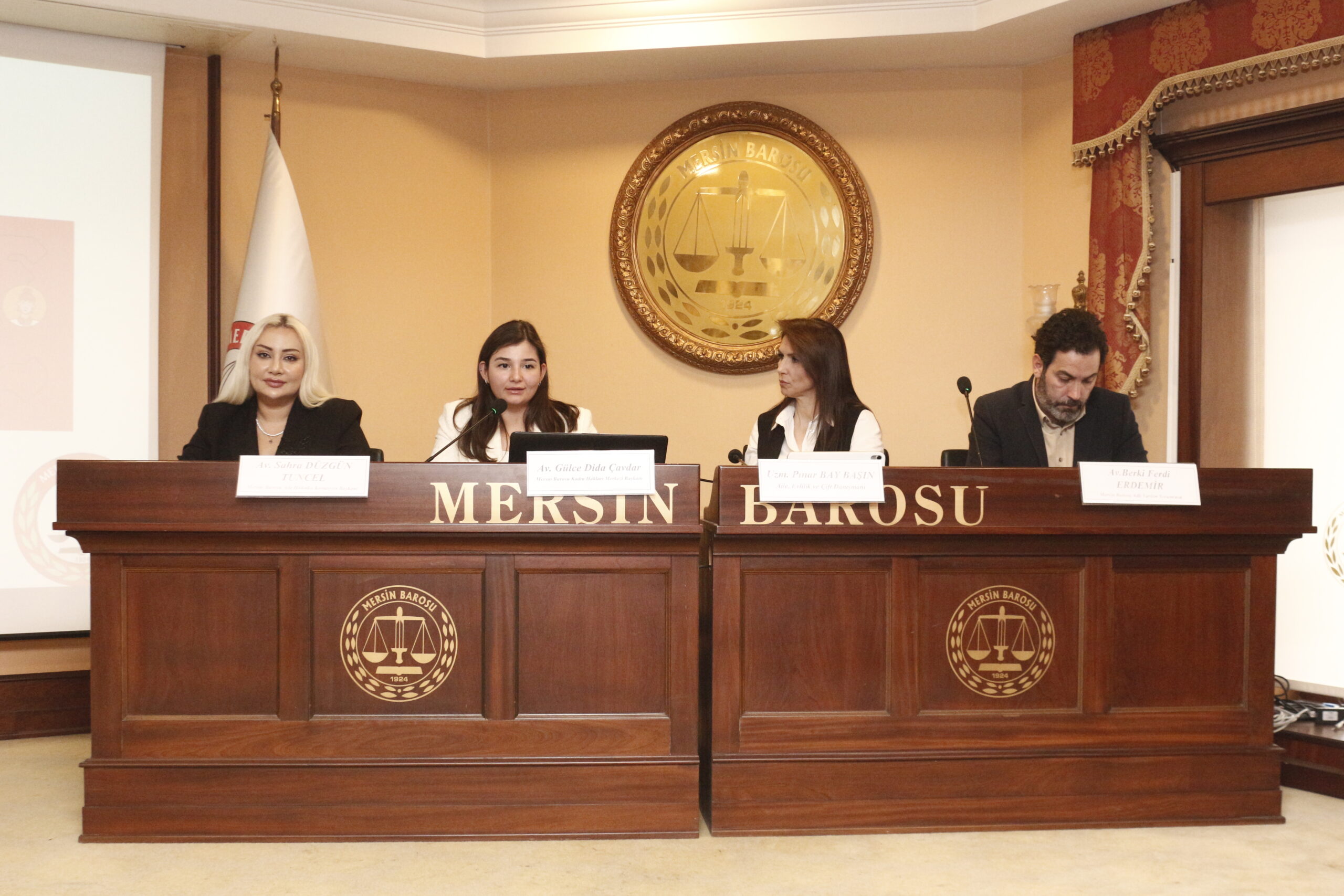 Mersin Barosu Adli Yardım Bürosu’nda görev alan avukatların, özellikle ‘kadının aile hukukundan doğan ve şiddet içeren talepleri’ konularında açılan davalarda, başvuru tarihinden başlayarak alınması gereken tedbirler ve savunma teknikleri açısından bilgilendirilmelerinin önemi, ayrıca şiddete maruz kalan, risk altında bulunan ve merkeze başvuruda bulunan kadınlara hukuksal danışmanlık hizmeti veren veya merkez bünyesindeki her türlü etkinlik, eğitim, faaliyete yönelik şiddet konusunda görev alacak avukat/stajyer avukatlara yönelik olarak uygulamada birlik, dayanışma, iletişim ve işbirliğinin sağlanması amacıyla düzenlenen eğitim semineri, Mersin Barosu Gökdelen hizmet biriminde düzenlendi.