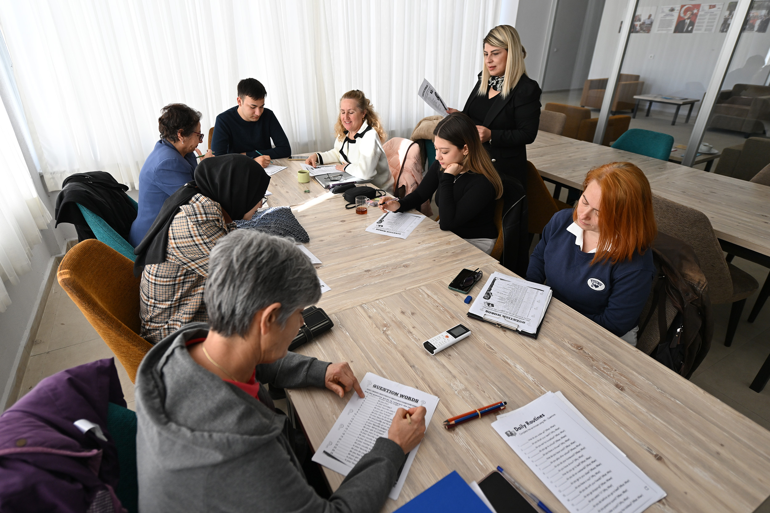 Kursiyerlerden Tülin Ergörenler, günümüz şartlarında iletişimin önemli olduğuna dikkat çekerek, “Hem sosyalleşmek hem de iletişimimi artırabilmek amacıyla böyle bir kursa katıldım. İngilizce’de başlangıç seviyesindeydim. Umarım iletişimim, arkadaşlarımızla çok daha iyi duruma gelecek ve öğreneceğiz. Burada şu an konuşuyoruz, sorularımız var, sorularımızı çözüyoruz, Türkçe’ye çeviriyoruz ve İngilizce’yi nasıl konuşmamız gerektiğini öğreniyoruz. Eğlenceli bir ortam. Her yaş grubundan arkadaşlarımızla eğleniyor ve öğreniyoruz” dedi.