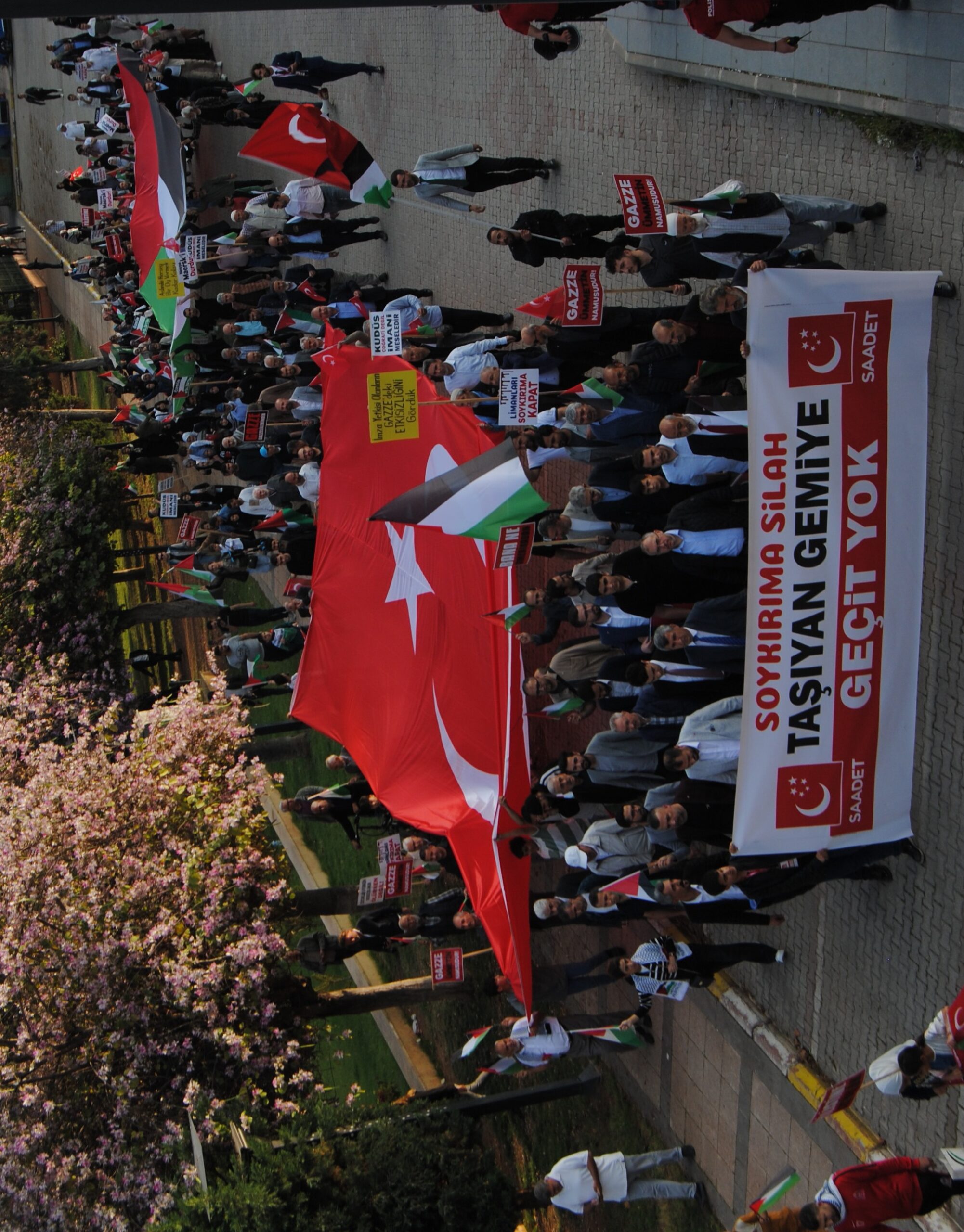 Saadet Partisi teşkilatlarının yanı sıra sivil toplum kuruluşlarının yanış ıra yüzlerce İsrail karşıtı vatandaşın katıldığı yürüyüş sonrası gerçekleştirilen basın açıklamasında tüm İslam ülkelerinin bir araya gelerek İsrail’in zulmünü durdurması için zorlamak gerektiğine dikkat çekildi.