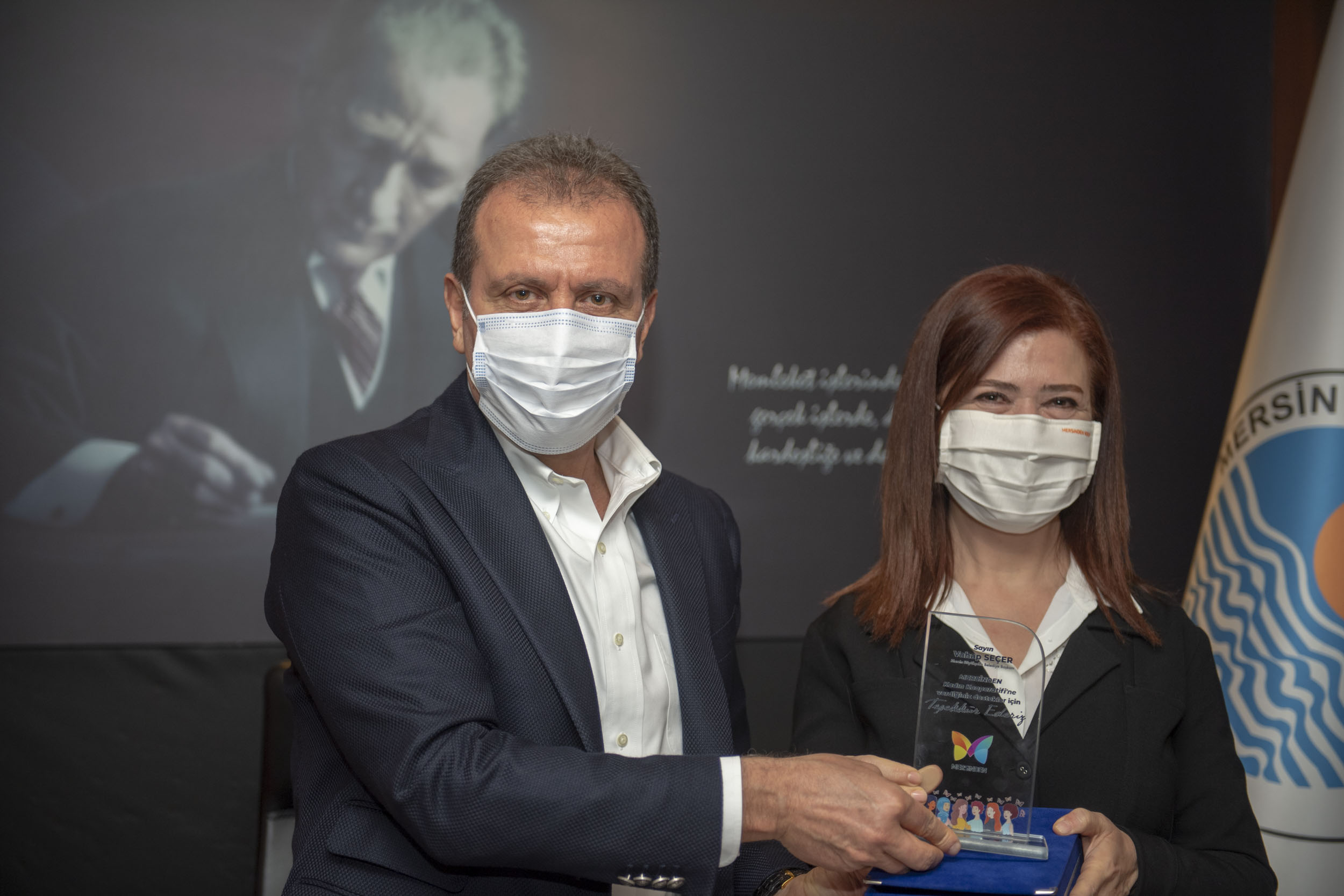 Mersinden Kadın Kooperatifi Başkanı Meral Seçer ile kooperatif üyesi kadınlar, yeni yıl öncesinde Mersin Büyükşehir Belediye Başkanı Vahap Seçer’i ziyaret ederek, kadınlar tarafından el emeği ile hazırlanmış ürünlerden hediye etti. Başkan Vahap Seçer, son 24 saatte yaşanan kadın cinayetleri hakkında konuşarak, bu olayların oluşmaması için toplum bilincinin gelişmesi gerektiğinden söz etti. Seçer, “Bu, dilek ve temenniler ile önlenecek bir durum değil. Başta Türkiye’de yasaların bunu önleyecek cezai müeyyideler içermesi gerekiyor” dedi