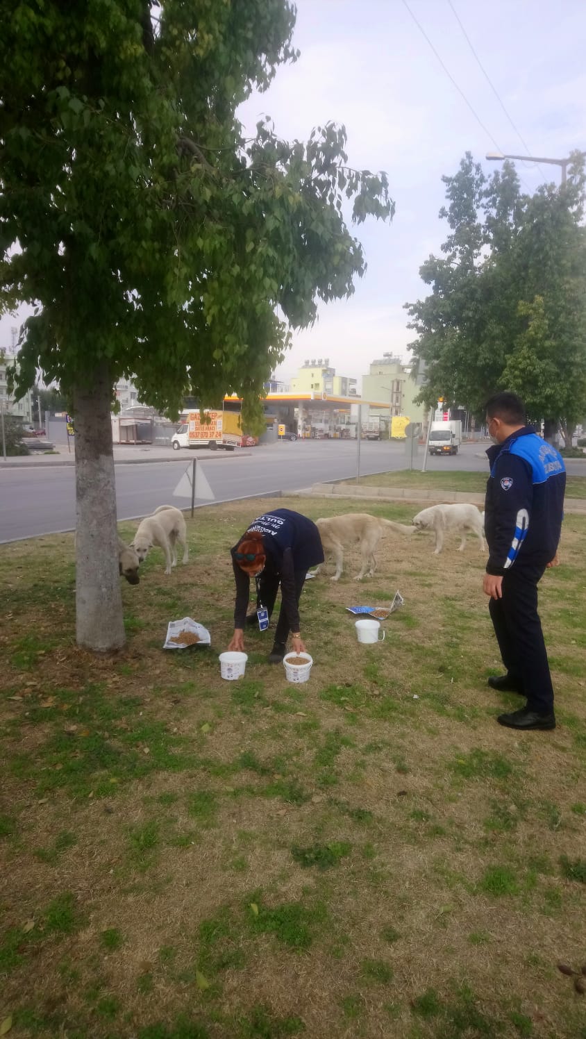 Zabıta ekipleri; Barış, Bahçe, Dikilitaş, Hal, Karaduvar, Çay Mahallesi ile Tırmıl Sanayi Sitesi ile farklı birçok noktada yaşayan yüzlere sokak hayvanını elleriyle besledi ve su verdi.