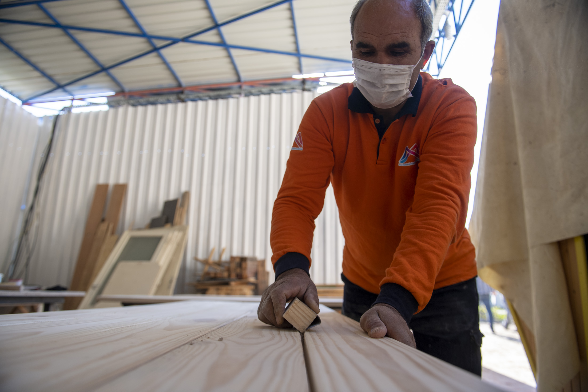 Kentin talepleri doğrultusunda üretime başladıklarını kaydeden Dokucu, “Bu iki atölyede şu anda memleketimize çok güzel şeyler üretmeye başladık. Atölyelerimizin kurulmasında kullandığımız malzemelerin tamamı doğada işlevini bitirmiş metal parçalardan oluşuyordu. 4 gün içerisinde burada monte ettik. Yine etrafını aynı şekilde çinkolarla kapattık. Amaca uygun hale getirdik. Şu an gayet iyi bir şekilde iş ve işlemlerimizi burada sürdürüyoruz” diye konuştu.